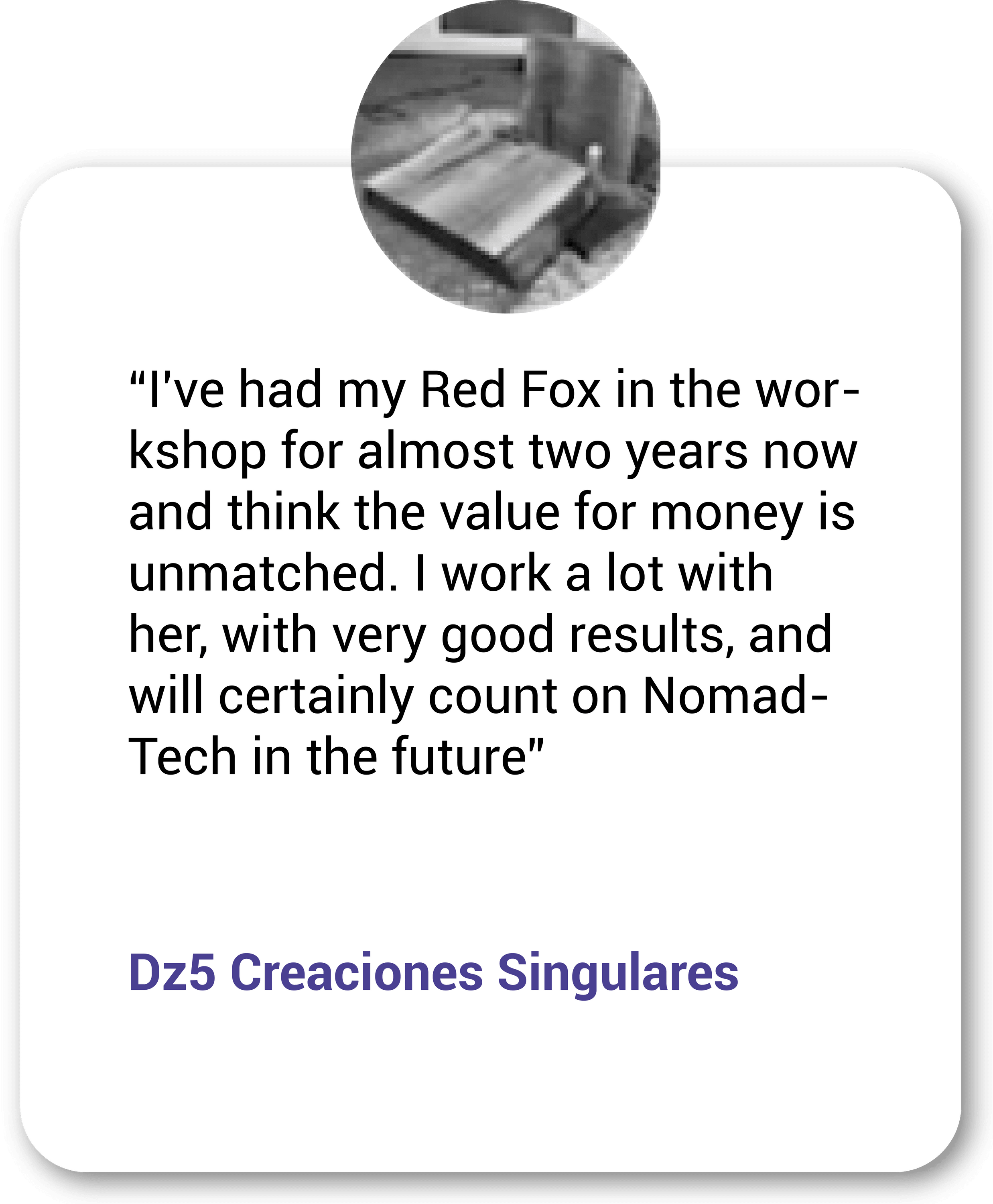 At NomadTech our passion drives us to innovate and develop all kinds of CNC machines, providing tools and educational content to make these technologies more accessible. Red Fox 2 combines all the knowledge, user feedback, and experience gained with the hundreds of units sold by its previous model.